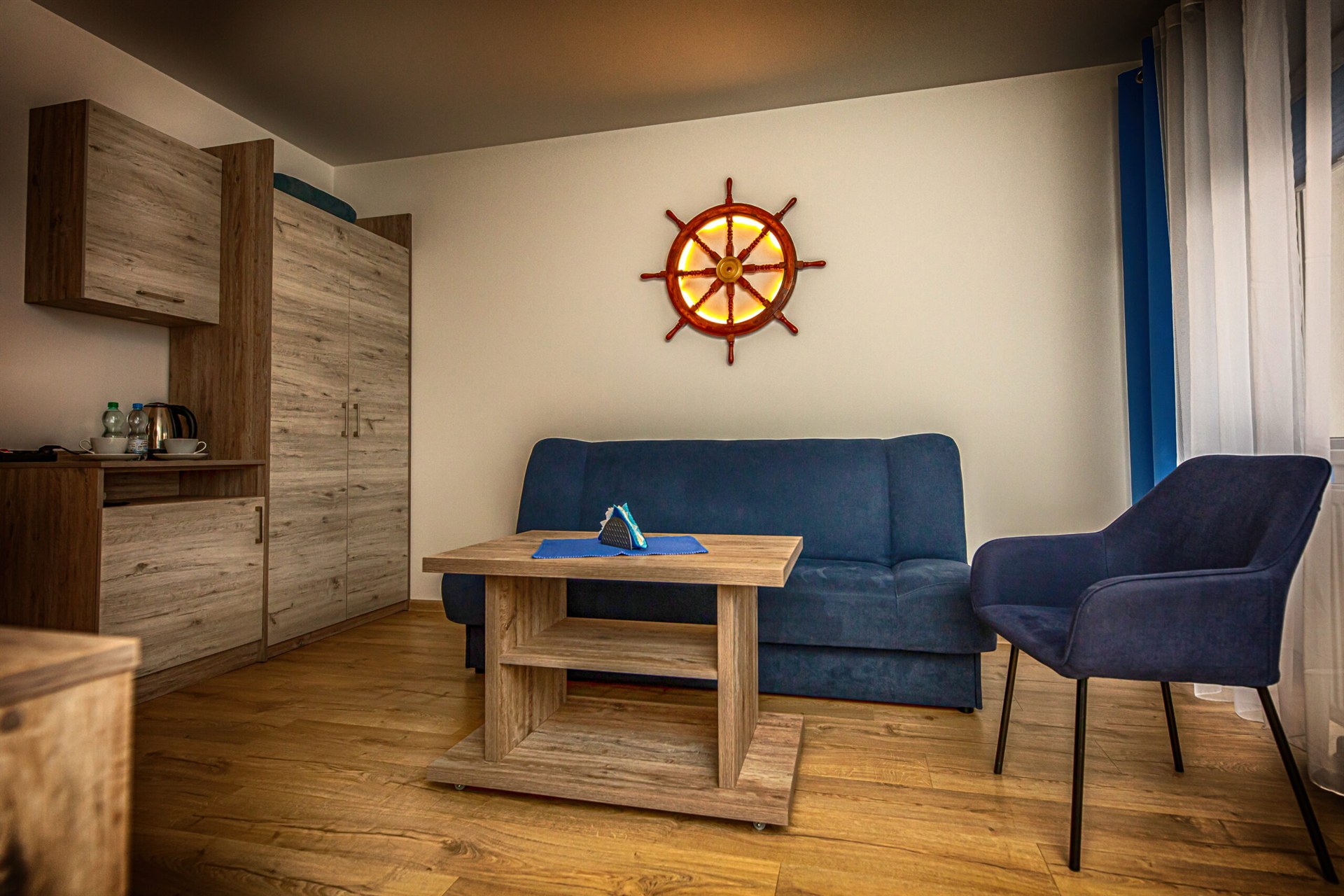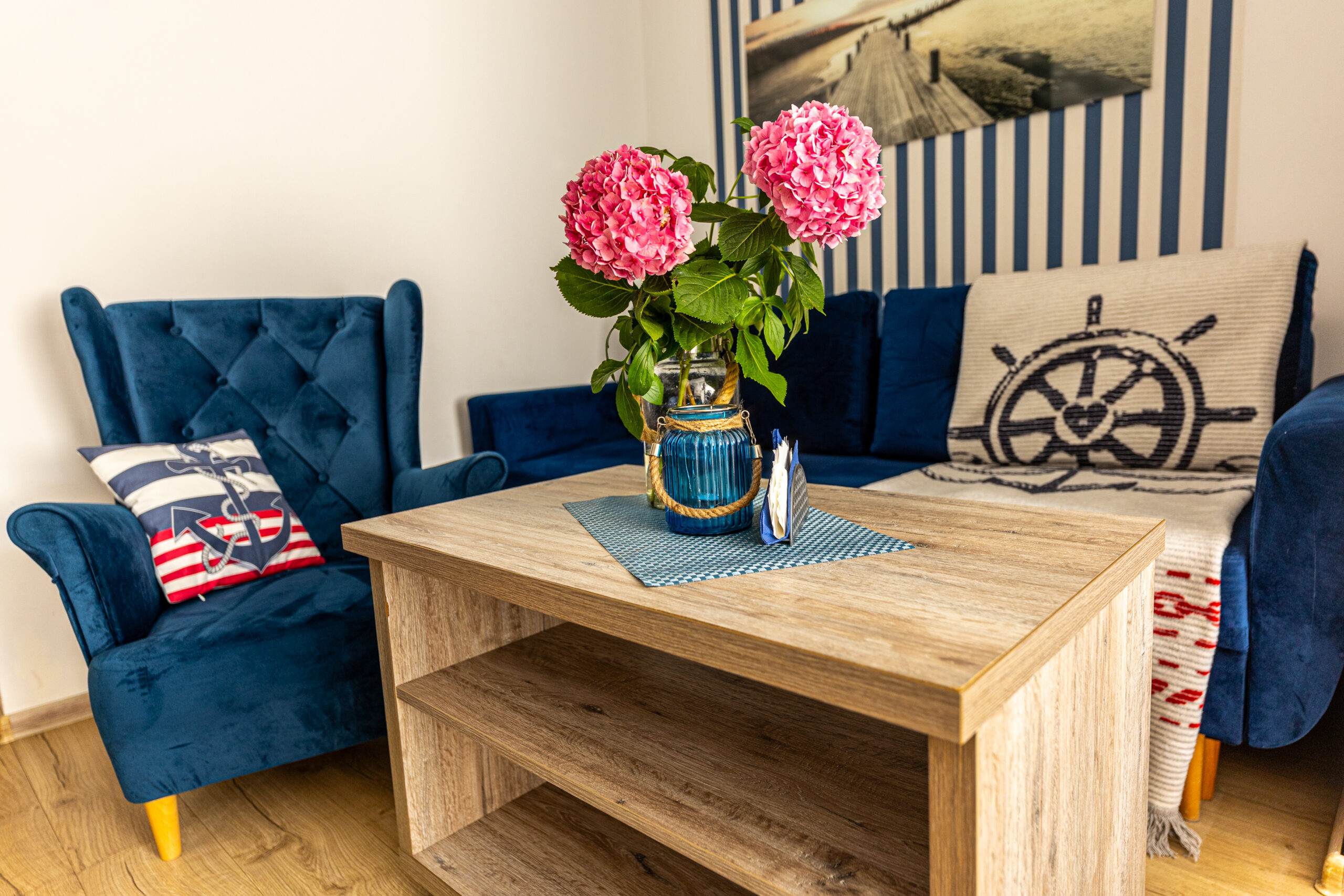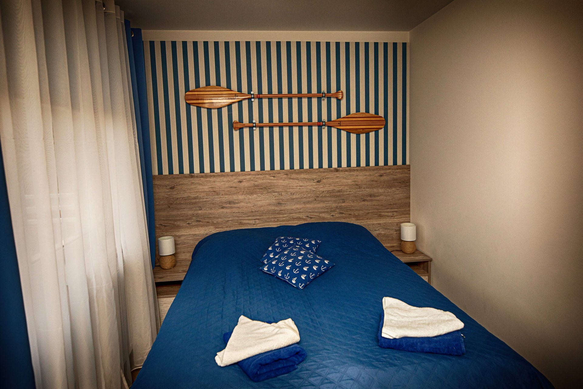 Nasze pokoje Deluxe Plus to przestronne wnętrza w marynistycznym stylu, które wprowadzają w prawdziwie nadmorski klimat i zapewniają komfortowy wypoczynek. To idealny wybór dla osób ceniących przestrzeń, wygodę i swobodę. Każdy pokój posiada własną łazienkę oraz bezpośrednie wyjście na ogród, taras lub balkon, dzięki czemu można rozpocząć dzień od chwili relaksu na świeżym powietrzu.