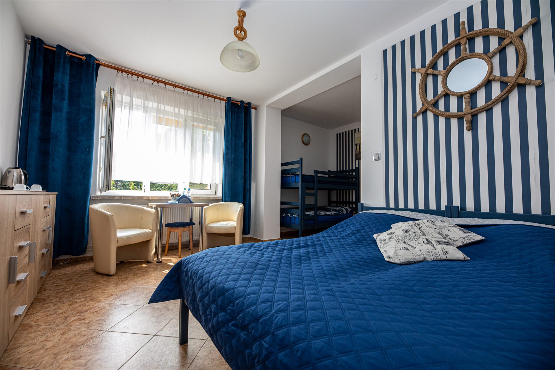 Nasze pokoje Standard Plus to przestronne wnętrza w marynistycznym stylu, każdy wyposażony w prywatną łazienkę, które łączą komfort i swobodę wypoczynku.